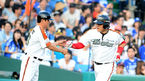 [OSEN=대전, 지형준 기자] 6일 오후 대전 한밭야구장에서 '2014 한국야쿠르트 세븐 프로야구' 한화 이글스와 삼성 라이온즈의 경기가 열렸다. 5회말 2사 2루에서 한화 김태균이 투런포를 날리고 이종범 코치와 하이파이브를 하고 있