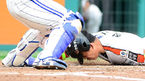 [OSEN=대전, 지형준 기자] 6일 오후 대전 한밭야구장에서 '2014 한국야쿠르트 세븐 프로야구' 한화 이글스와 삼성 라이온즈의 경기가 열렸다. 2회말 1사 1루에서 한화 정근우가 최진행의 2루타에 홈에서 슬라이딩했지만 삼성 이지영