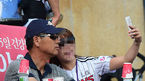 [OSEN=잠실, 민경훈 기자] 6일 오후 서울 잠실야구장에서 열린 2014 한국야쿠르트 세븐 프로야구 LG 트윈스와 KIA 타이거즈의 경기, 김성근 고양 원더스 감독이 관중석에서 경기를 주시하던 중 팬의 요청으로 셀프카메라를 찍고 있