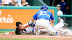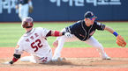 [OSEN=대전, 지형준 기자] 6일 오후 대전 한밭야구장에서 '2014 한국야쿠르트 세븐 프로야구' 한화 이글스와 삼성 라이온즈의 경기가 열렸다. 2회말 1사 1루에서 한화 정근우가 최진행의 2루타에 홈에서 삼성 이지영에 태그아웃 당