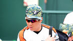 [OSEN=대전, 지형준 기자] 6일 오후 대전 한밭야구장에서 '2014 한국야쿠르트 세븐 프로야구' 한화 이글스와 삼성 라이온즈의 경기가 열린다. 경기에 앞서 한화 조인성이 훈련을 하며 미소짓고 있다. SK에서 한화로 이적한 베테랑