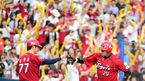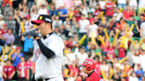 [OSEN=잠실, 이대선 기자] 7일 오후 서울 잠실야구장에서 '2014 한국야쿠르트 세븐 프로야구' LG 트윈스와 KIA 타이거즈의 경기가 열렸다. 7회초 1사에서 KIA 나지완이 솔로 홈런을 치고 선동렬 감독과 하이파이브를 하고 있다. LG와 KI