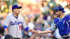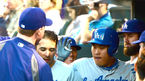 [OSEN=덴버(미국), 곽영래 기자] 6일(한국시간) 미국 콜로라도주 덴버 쿠어스필드에서 '2014 메이저리그' 미국 메이저리그 콜로라도 로키스와 LA 다저스의 경기, 류현진이 4회말 무사 1,2루 위기를 넘기고 부테라와 손바닥을 마주치