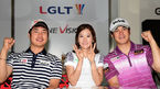 [OSEN=시흥, 최규한 기자] 8일 오전 경기도 시흥 화인비전스크린에서 '2014-2015 삼성증권 mPOP GTOUR(지투어) Summer Season 1차 대회' 결선 2라운드가 열렸다. 김민수, 김지민 프로, 리치가 취재진을 향해 포즈를 취하고 있다. 프로 골퍼들