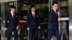 [OSEN=이대선 기자] 9일 오후 서울 여의도 MBC 남문에서 김성주, 안정환, 송종국 등 MBC 브라질 월드컵 중계진이 출정식에 참석해 시민들을 만났다. 송종국, 김성주, 안정환이 출정식 장소로 이동하고 있다. 이날 중계진은 이벤트에
