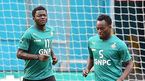 [OSEN=마이애미(미국 플로리다주), 백승철 기자] 9일 오전(이하 한국시간) 미국 플로리다주 마이애미 선라이프 스타디움에서 열린 가나 대표팀 훈련에서 설리 문타리(왼쪽)와 마이클 에시엔이 몸을 풀고 있다. 홍명보 감독이 지휘
