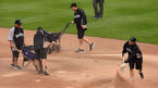 [OSEN=쿠어스필드(덴버) 곽영래 기자] 9일 새벽(한국시간) 미국 콜로라도주 덴버 쿠어스필드에서 열린 '2014 메이저리그' 미국 메이저리그 콜로라도 로키스와 LA 다저스의 경기, 쿠어스필드 관계자들이 비에 젖은 그라운에 흙을 뿌