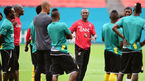 [OSEN=마이애미(미국 플로리다주), 백승철 기자] 9일 오전(이하 한국시간) 미국 플로리다주 마이애미 선라이프 스타디움에서 열린 가나 대표팀 훈련에서 크와시 아피아 감독이 선수들에게 이야기를 하고 있다. 홍명보 감독이 지
