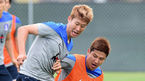 [OSEN=마이애미(미국 플로리다주), 백승철 기자] 9일 오전(이하 한국시간) 미국 플로리다주 마이애미 선라이프 스타디움에서 열린 대표팀 훈련에서 이청용과 기성용이 한 곳으로 모이고 있다. 홍명보 감독이 지휘하는 한국 축구