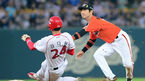 [OSEN=광주,박준형 기자] 11일 오후 광주-KIA 챔피언스필드에서 열리는 2014 한국야쿠르트 세븐 프로야구 KIA 타이거즈와 한화 이글스의 경기,4회말 1사 1루 KIA 강한울의 타석때 한화 한상훈이 도루 시도한 1루 주자 김다원을 태그아