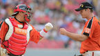 [OSEN=광주,박준형 기자] 11일 오후 광주-KIA 챔피언스필드에서 열리는 2014 한국야쿠르트 세븐 프로야구 KIA 타이거즈와 한화 이글스의 경기, 1회말 KIA의 공격을 삼자범퇴로 막은 한화 선발투수 앨버스와 조인성 포수가 하이파이브