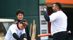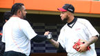 [OSEN=사직,박준형 기자] 12일 오후 부산 사직구장에서 열리는 2014 한국야쿠르트 세븐 프로야구 롯데 자이언츠와 LG 트윈스의 경기에 앞서 롯데 히메네스가 박흥식 타격코치에게 장난을 치고 있다. 이날 경기에서 롯데와 LG는 송승