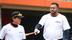 [OSEN=사직,박준형 기자] 12일 오후 부산 사직구장에서 열리는 2014 한국야쿠르트 세븐 프로야구 롯데 자이언츠와 LG 트윈스의 경기에 앞서 롯데 히메네스와 최준석이 타격 훈련중 이야기를 나누고 있다. 이날 경기에서 롯데와 LG는