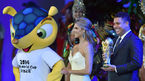 [OSEN=사진팀] 10일(현지시간) 브라질 리우데자네이루에서 열린 FIFA 회의에서 2014 브라질 월드컵 사회를 맡은 브라질 출신 모델 페르난다 리마와 호나우두가 브라질 월드컵 트로피를 들고미소짓고 있다. /photo@osen.co.kr ⓒAFPBBNews =
