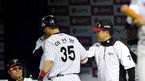 [OSEN=잠실, 최규한 기자] 13일 오후 서울 잠실구장에서 '2014 한국야쿠르트 세븐 프로야구' LG 트윈스와 SK 와이번스의 경기가 열렸다. 7회말 LG 공격 선두타자로 나선 이진영이 우월 솔로포를 날리고 양상문 감독의 축하를 받고 있