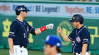 [OSEN=대구,박준형 기자] 14일 오후 대구구장에서 열린 2014 한국야쿠르트 세븐 프로야구 삼성 라이온즈와 두산 베어스의 경기,7회초 2사 2,3루 두산 칸투가 2타점 적시타를 날리고 1루 코치와 하이파이브를 하고 있다. 삼성과 두산