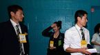 [OSEN=고용준 기자] 14일 서울 용산 온게임넷 e스포츠 상설경기장에서 '네네치킨배 블레이드 앤 소울 비무제: 임진록'의 결승전이 열렸다. 대회 홍보대사인 홍진호의 열성 팬들이 응원 메시지를 들고 있다. 이번 블소 비무제는 대