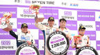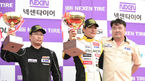 [OSEN=영암, 손용호 기자] 국내 최대규모의 모터 스포츠 축제 '2014 넥센타이어 스피드레이싱' 2전이 15일 영암 코리아인터내셔날서킷에서 열려 투어링 A 1위를 차지한 나창규 2위 서상도 3위 이태관이시상대에서 기념사진을 찍고