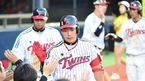 [OSEN=잠실, 최규한 기자] 15일 오후 서울 잠실구장에서 '2014 한국야쿠르트 세븐 프로야구' LG 트윈스와 SK 와이번스의 경기가 열렸다. 6회말 LG 공격 2사 만루 상황 백창수가 좌월 만루포를 날리고 홈을 밟은 뒤 더그아웃 동료들과
