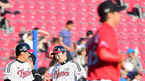 [OSEN=잠실, 최규한 기자] 15일 오후 서울 잠실구장에서 '2014 한국야쿠르트 세븐 프로야구' LG 트윈스와 SK 와이번스의 경기가 열렸다. 2회말 LG 공격 2사 3루 상황 채은성의 중전안타 때 홈을 밟은 이병규가 더그아웃 동료들과 인사