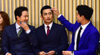 [OSEN=정송이 기자] 황정음 류수영 정경호 등이 출연하는 SBS 새 주말드라마 ‘끝없는 사랑' 제작발표회가 16일 오후 목동 SBS에서 진행됐다. 정웅인 차인표 류수영이 기름종이로 메이크업을 고치고 있다. '끝없는 사랑’은 격동의