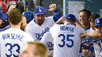 [OSEN=다저스타디움(LA 미국 캘리포니아주), 곽영래 기자] 17일(이하 한국시간) 미국 로스앤젤레스 다저스타디움에서 벌어진 LA 다저스와 콜로라도 로키스 경기 3회말 1사 3루타와 실책으로 홈을 밟은 고든을 동료들이 축하해주고