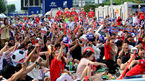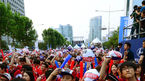 [OSEN=김경섭 기자] 한국과 러시아의 2014 FIFA 월드컵 첫 경기가 펼쳐진 18일 오전 서울 삼성동 코엑스 사거리 영동대로에서 진행된 길거리 응원전, 이근호의 선취골때 수많은 축구팬들이 환호하고 있다. 이날 응원전에는 김창렬의