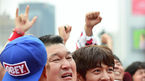 [OSEN=최규한 기자] 한국과 러시아의 2014 FIFA 월드컵 첫 경기를 앞두고 18일 오전 서울 광화문광장에서 거리응원이 열렸다. 후반 대한민국 이근호의 첫 골이 터지자 예체능 팀 강호동을 비롯한 광화문 광장의 축구팬들이 환호하고
