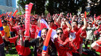 [OSEN=최규한 기자] 한국과 러시아의 2014 FIFA 월드컵 첫 경기를 앞두고 18일 오전 서울 광화문광장에서 거리응원이 열렸다. 후반 대한민국 이근호의 첫 골이 터지자 예체능 팀을 비롯한 광화문 광장의 축구팬들이 환호하고 있다.