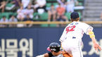 [OSEN=잠실, 김영민 기자] 19일 오후 서울 잠실구장에서 열린 '2014 한국야쿠르트 세븐 프로야구' 두산베어스와 LG 트윈스의 경기, 2회초 2사 1루 오지환 타석때 1루 주자 박용택 2루 도루를 하였으나 태그아웃 처리되고 있다. 두산