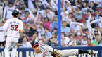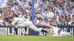 [OSEN=잠실, 김영민 기자] 19일 오후 서울 잠실구장에서 열린 '2014 한국야쿠르트 세븐 프로야구' 두산베어스와 LG 트윈스의 경기, 2회말 1사 1,2루 김재호의 2,3루간 내야안타때 조쉬벨의 송구를 LG 정성훈 1루수가 포구를 하며 넘어지
