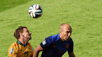 [OSEN=사진팀] 19일(이하 한국시각) 브라질 포르투 알레그레의 에스타디오 베이라리오에서 2014 브라질월드컵 B조 2차전 네덜란드와 호주의 경기가 열렸다. 전반 호주 윌킨슨과 네덜란드 로벤이 공중볼을 다투고 있다. 호주는 지