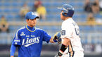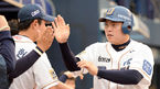 [OSEN=창원, 이대선 기자] '2014 한국야쿠르트 세븐 프로야구' NC 다이노스와 삼성 라이온즈의 경기가 20일 오후 경남 창원 마산야구장에서 열렸다. 2회말 2사 2루에서 NC 김태군이 좌중간 적시타를 치고 전준호 코치와 하이파이브를
