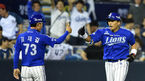 [OSEN=창원, 이대선 기자] '2014 한국야쿠르트 세븐 프로야구' NC 다이노스와 삼성 라이온즈의 경기가 20일 오후 경남 창원 마산야구장에서 열렸다. 7회말 1사 1루에서 삼성 이승엽이 우중월 투런 홈런을 치고 김재걸 코치와 하이파
