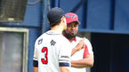 [OSEN=잠실, 정송이 기자] 22일 오후 서울 잠실야구장에서 '2014 한국야쿠르트 세븐 프로야구' KIA 타이거즈와 두산 베어스의 경기에 앞서 두산 칸투와 KIA 어센시오가 이야기를 나누고 있다. KIA는 임준섭을 선발로 내세운다. 반면