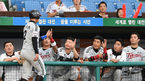 [OSEN=대전, 이대선 기자] 23일 오후 대전한밭야구장에서 '2014 한국야쿠르트 세븐 프로야구' 한화 이글스와 LG 트윈스의 경기가 열렸다. 4회초 무사 3루에서 LG 정성훈의 내야땅볼때 홈을 밟은 3루주자 오지환이 더그아웃에서 동료