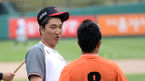 [OSEN=대전, 이대선 기자] 23일 오후 대전한밭야구장에서 '2014 한국야쿠르트 세븐 프로야구' 한화 이글스와 LG 트윈스의 경기가 열리는 가운데 LG 이진영이 한화 정근우와 이야기를 나누고 있다./sunday@osen.co.kr