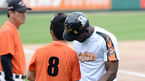 [OSEN=대전, 이대선 기자] 23일 오후 대전한밭야구장에서 '2014 한국야쿠르트 세븐 프로야구' 한화 이글스와 LG 트윈스의 경기가 열리는 가운데 한화 피에가 정근우에게 장난을 치고 있다./sunday@osen.co.kr