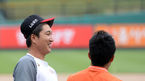 [OSEN=대전, 이대선 기자] 23일 오후 대전한밭야구장에서 '2014 한국야쿠르트 세븐 프로야구' 한화 이글스와 LG 트윈스의 경기가 열리는 가운데 LG 이진영이 한화 정근우와 이야기를 나누고 있다./sunday@osen.co.kr