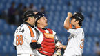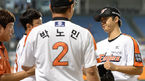 [OSEN=대전, 이대선 기자] 23일 오후 대전한밭야구장에서 '2014 한국야쿠르트 세븐 프로야구' 한화 이글스와 LG 트윈스의 경기가 열렸다. 6회초 2사 1루에서 마운드를 방문한 정민철 코치가 투수 안영명, 포수 조인성과 이야기를 나