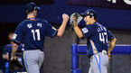 [OSEN=잠실,박준형 기자] 24일 오후 서울 잠실구장에서 열린 2014 한국야쿠르트 세븐 프로야구 LG 트윈스와 NC 다이노스의 경기,8회말 LG 공격을 막은 NC 찰리가 이닝종료 후 노성범의 축하를 받으며 더그아웃으로 들어가고 있다.찰리