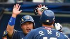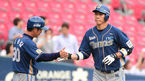 [OSEN=잠실, 백승철 기자] 25일 오후 서울 잠실구장에서 열린 '2014 한국야쿠르트 세븐 프로야구' LG 트윈스와 NC 다이노스의 경기 2회초 1사 1루 모창민이 투런포를 치고 홈을 밟자 1루주자 이호준이 홈에서 하이파이브를 하고 있다.