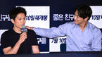 [OSEN=박준형 기자] 25일 오후 서울 왕십리 CGV에서 진행된 영화 '좋은 친구들' 언론시사회(감독 이도윤)에서 배우 지성과 주지훈이 장난을 치고 있다. 영화 '좋은 친구들'에서 한 순간 모든 것을 잃고 진실을 쫓는 남자 현태 역을