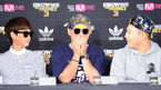 [OSEN=김경섭 기자]25일 오후 여의도 63시티 컨벤션센터 별관 CEDAR룸에서 Mnet '쇼미더머니3' 제작발표회가 열렸다. 제작발표회에 참여한 마스타 우가 당황해하자 타블로가 괜찮다며 위로하고 있다. 올해 '쇼미더머니 3'는 크루 대결