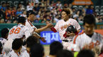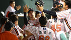 [OSEN=대전, 지형준 기자] 26일 오후 대전 한밭야구장에서 '2014 한국야쿠르트 세븐 프로야구' 한화 이글스와 롯데 자이언츠의 경기가 열렸다. 4회말 공격을 마치고 한화 김태균이 장종훈 코치를 비롯한 동료선수들과 하이파이브