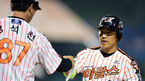[OSEN=대전, 지형준 기자] 26일 오후 대전 한밭야구장에서 '2014 한국야쿠르트 세븐 프로야구' 한화 이글스와 롯데 자이언츠의 경기가 열렸다. 4회말 2사 2루에서 한화 정근우가 역전 1타점 적시타를 날리고 강석천 코치와 주먹을