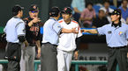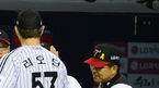 [OSEN=대전, 지형준 기자] 26일 오후 대전 한밭야구장에서 '2014 한국야쿠르트 세븐 프로야구' 한화 이글스와 롯데 자이언츠의 경기가 열렸다. 8회말 투수교체 과정에서 롯데 김시진 감독과 심판진이 이야기를 나누고 있다. 무사에