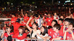 [OSEN=이대선 기자] 대한민국과 벨기에의 2014 FIFA 월드컵 H조 조별예선이 열린 27일 오전 서울 광화문광장에서 길거리 응원전이 펼쳐졌다. 경기에 앞서 축구팬들이 열띤 응원을 펼치고 있다. H조 최하위 한국이 조 1위 벨기에를 상