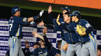 [OSEN=부산, 지형준 기자] 27일 오후 부산 사직구장에서 '2014 한국야쿠르트 세븐 프로야구' 롯데 자이언츠와 NC 다이노스의 경기가 열렸다. 6회초 2사에서 NC 이호준이 솔로포를 날리고 더그아웃에서 동료선수들과 하이파이브를 하