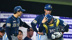 [OSEN=부산, 지형준 기자] 27일 오후 부산 사직구장에서 '2014 한국야쿠르트 세븐 프로야구' 롯데 자이언츠와 NC 다이노스의 경기가 열렸다. 8회말 NC 권희동이 데뷔 첫 포수 마스크를 쓰고 경기를 준비하며 김태군의 격려를 받고 있